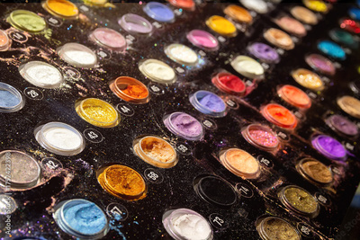 A vibrant collection of colorful cosmetic pigments and paints
