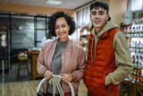 Happy mother and son shopping for gifts in store