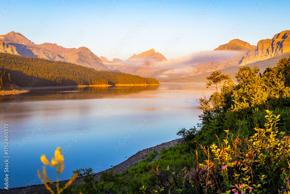 Beautiful Sunrise at Lake Sherburne in Glacier National Park