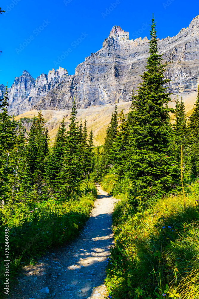 Scenic Iceberg Lake Trail Through the Morning Forest in Glacier National Park