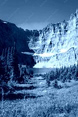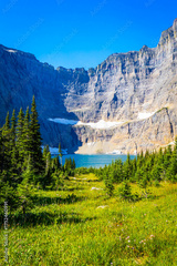 Turquoise clear waters of Iceberg lake at Glacier National Park