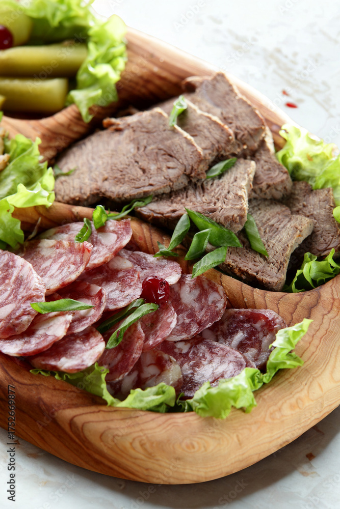 Deliciously stacked deli sandwich with sliced meats and fresh lettuce
