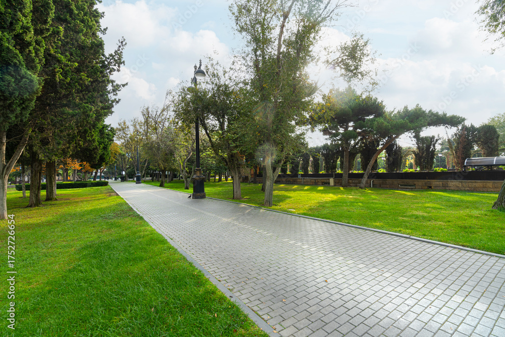 the gardens along the Baku seaside National park in Baku, Azerbaijan