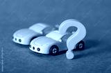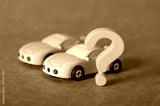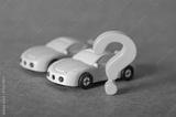 conceptual image uses a prominent question mark and two toy vehicles to represent the complexities of car ownership, financing, and maintenance decisions.