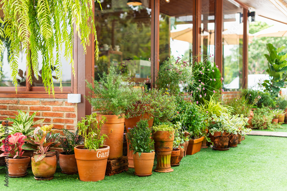 Vibrant showcase of potted plants outdoor garden nature scene close-up view greenery inspiration