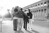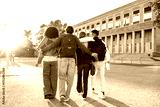 Diverse students walking to university campus together