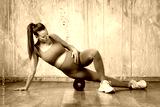Pregnant woman performing foam rolling exercise for wellness