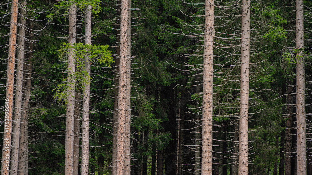 nature sceneries inside the Paneveggio natural park, Predazzo, Dolomites, Italy
