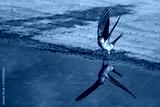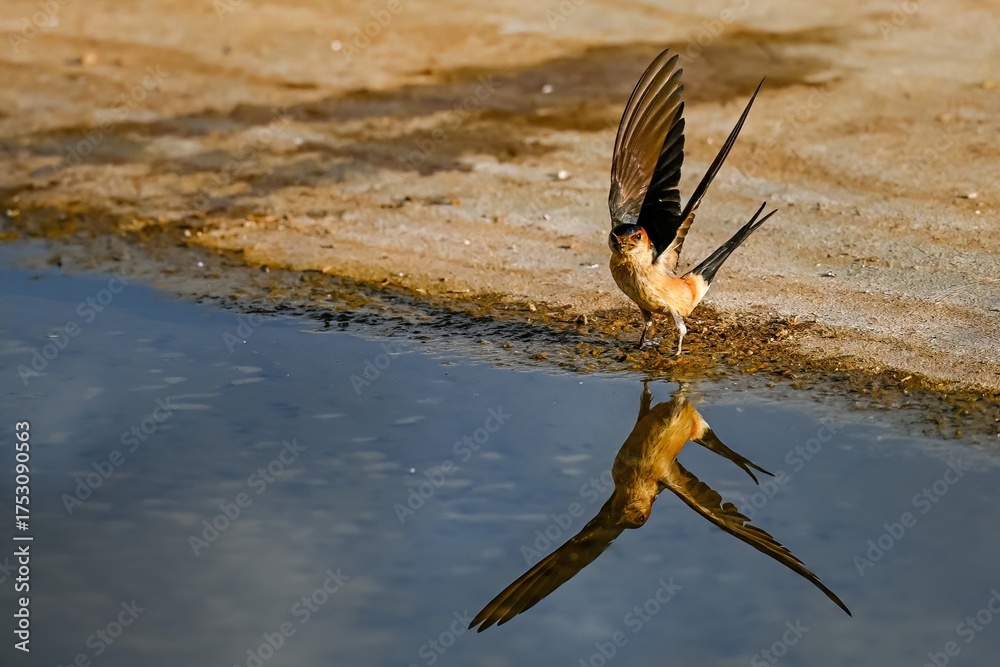 Red-eared Swallow or Cecropis daurica, flying over the spring.