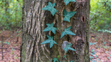 Old beautiful deciduous tree with green creeper plant leaves on it