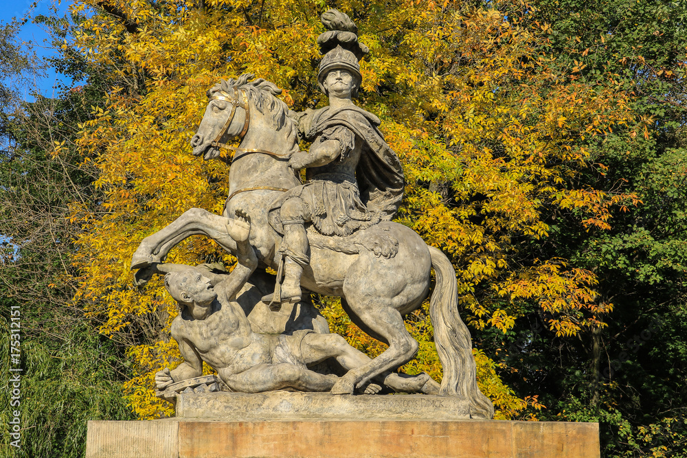 Historical Baroque sandstone equestrian monument to the great king and warrior Jan III Sobieski, defender of Christian Europe, created in 1788 for the anniversary of the Vienna battle