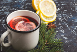 Mulled wine with lemon slices