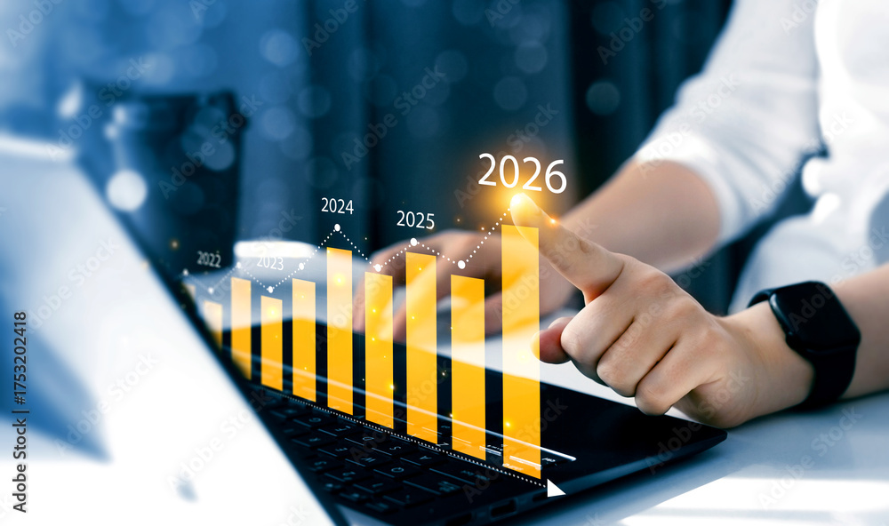 Growth graph a year 2026 of business and data analysis. Development to success in year 2026.