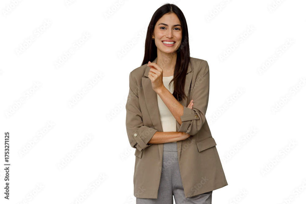 Professional businesswoman smiling confidently, posing with crossed arms, looking at camera. Isolated on a transparent background