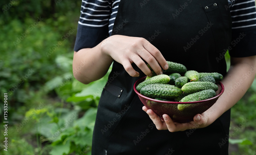 Harvesting fresh cucumbers in a vibrant garden during the summer months