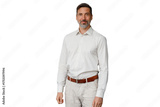Middle aged man smiling wearing a white shirt and beard, portrait on transparent background