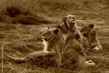 Male lions seperated from Rongai pride relaxing at Masai Mara, Kenya