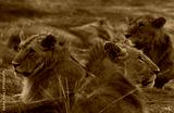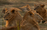 Male lions of Rongai pride relaxing at Masai Mara, Kenya. Selective focus on the front lion.