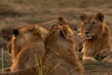 Male lions of Rongai pride relaxing at Masai Mara, Kenya