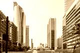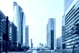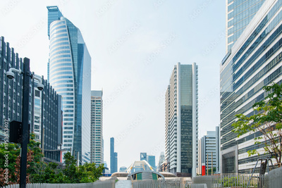 Modern skyline of Bangkok city with skyscrapers, high-rise buildings, futuristic architecture and elevated walkway. Financial and business district with modern office buildings in Thailand