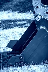 Shovel of excavator or bulldozer. Part of industrial machinery. Technology