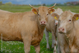Cows grazing in a green pasture. Herd of cattle in the countryside. Alpine meadows with grazing cows. Farmland with cows livestock. Grassy fields filled with cows. Outdoor scene with grazing bovine.