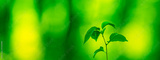 Green forest leaves in sunlight. Green bokeh overlays on natural greenery backdrop.