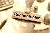 Ein Holzstempel ist beschriftet mit dem Aufdruck Rechenfehler als Symbolbild für eine Falschberechnung in der Kalkulation der Finanzen