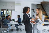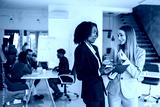 Businesswomen discussing documents during a casual office meeting