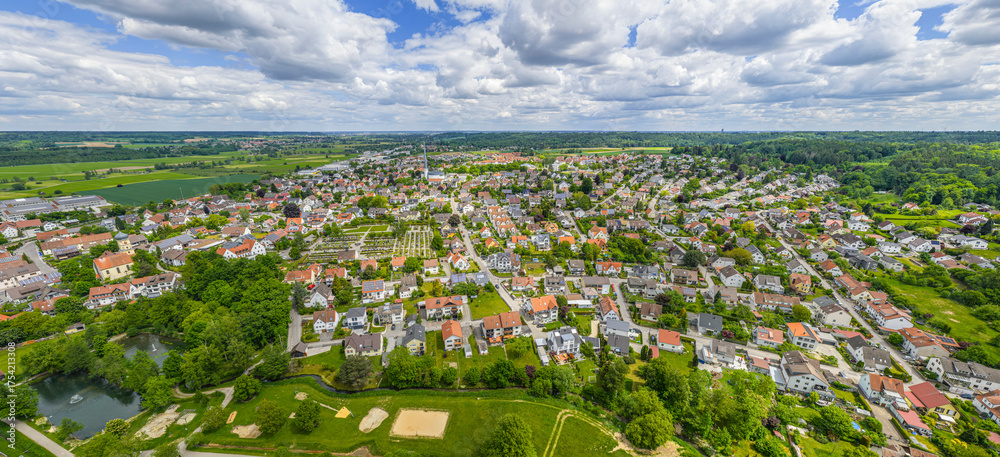 Der Markt Diedorf im Schmuttertal westlich von Augsburg aus der Vogelperspektive