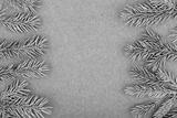 Christmas. New Year. Green pine branches are beautifully arranged around vibrant blue background, creating fresh and natural frame with ample copy space for text or design elements
