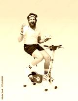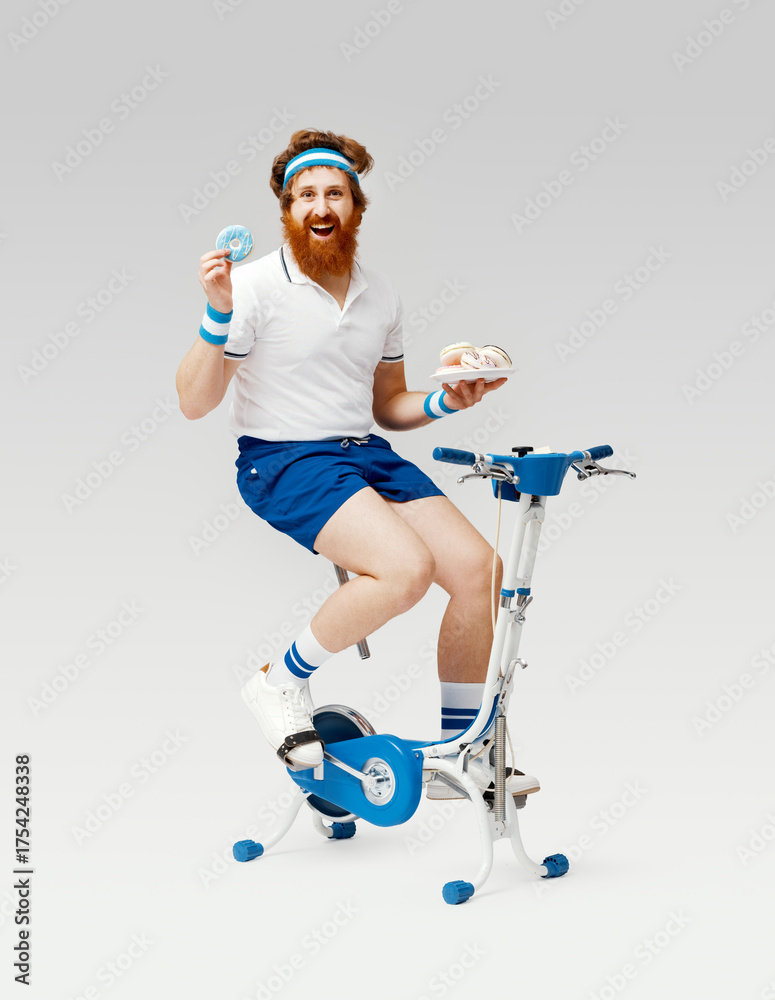 Funny guy eating sweets and working out at the same time