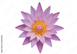 Isolated light-purple water lily with yellow center, symmetrical and full blossom, close-up shot