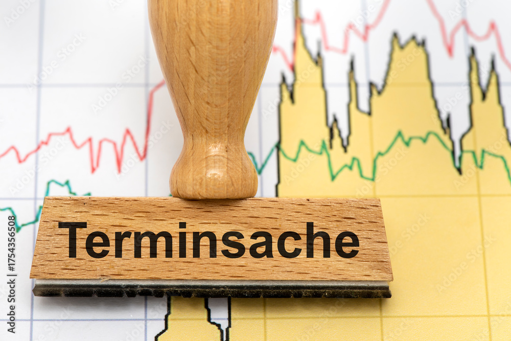 Ein Holzstempel ist beschriftet mit dem Auftdruck "Terminsache" als Symbolbild für eilige Bearbeitung von Unterlagen