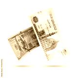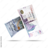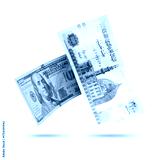 Egyptian 200LE Banknotes and 100$ Flying on a White Background, Currency Exchange Concept, All in Focus