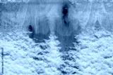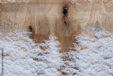 Winter background with light snow covering rough wooden boards, highlighting natural grain and cold seasonal atmosphere