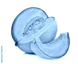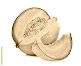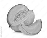 slice of japanese melons, orange melon or cantaloupe melon with seeds isolated on white background