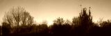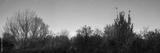 Vintage-style panoramic view of trees and bushes bathed in the gentle glow of twilight