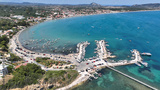 Aerial drone photo of famous bay of Laganas famous for Caretta caretta sea turtle hatching, Zakinthos island, Ionian, Greece