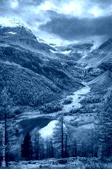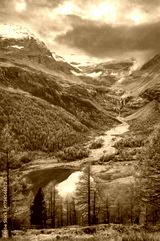Autumn Landscape with Glacier and Lake near Zermatt, Switzerland