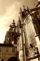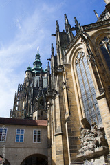 Beautiful view of the St. Vitus Cathedral against the blue sky. Prague. Czech.