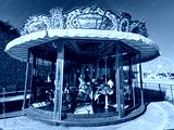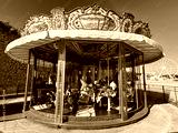 View of the children's carousel on a summer day. Close-up. Antibes. France.