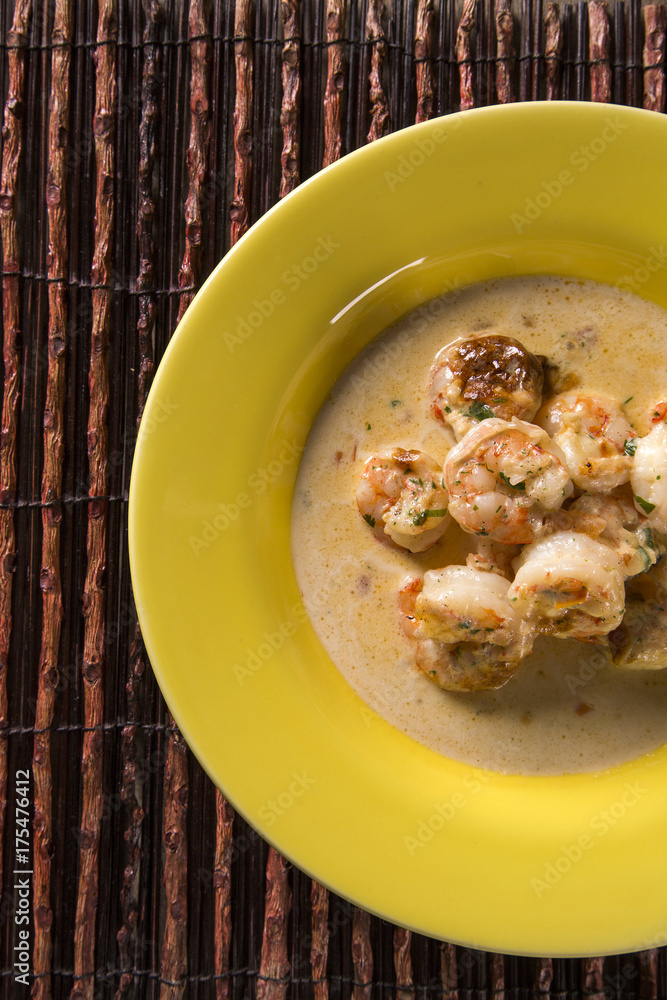 Shrimp gratin in cream cheese