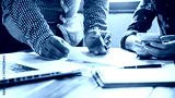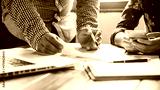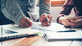 Digital Marketing Strategy Session: Business Professionals Collaborating on Data Analysis with Laptop and Smartphone
