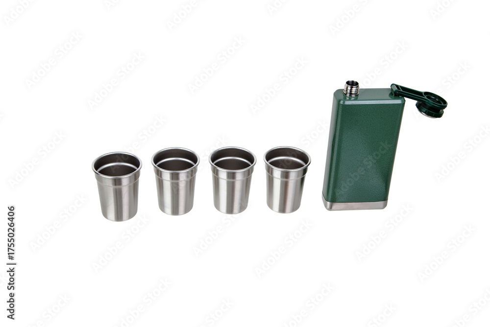 Green Hip Flask with Companion Steel Cups