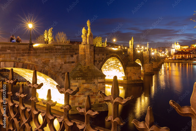 Charles Bridge at sunset in Prague Czech Republic