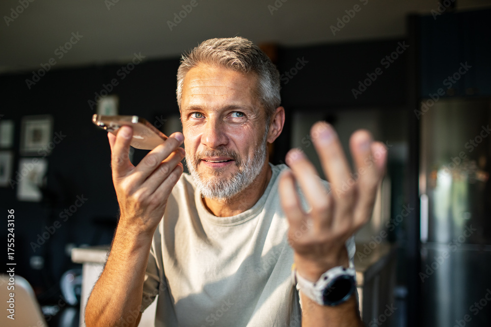 Mature man using smartphone at home