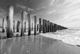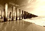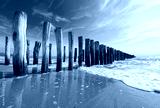 Strand mit Buhnen bei Flut