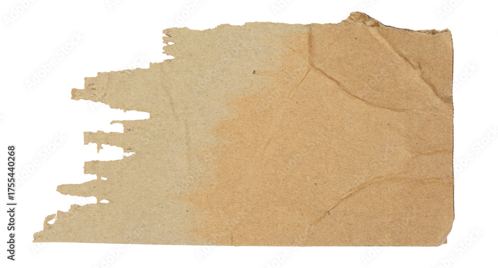 A torn piece of beige paper with rough. Torn brown paper. Piece of scrap cardboard on transparent.