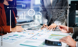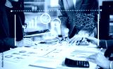 Businesswoman hand Project manager working and update tasks and Gantt chart scheduling virtual diagram.